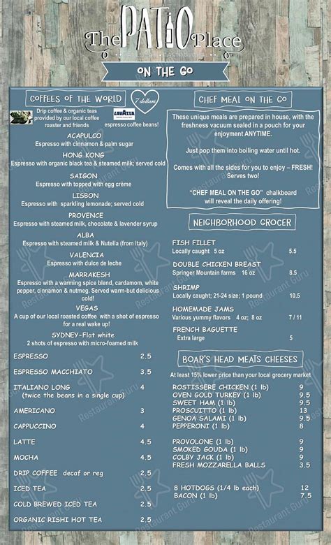 - Explore the menu: The Patio Place Fernandina offers a variety of dishes, so take your time to explore the menu and try something new. Don't be afraid to ask the staff for recommendations - they're always happy to help.